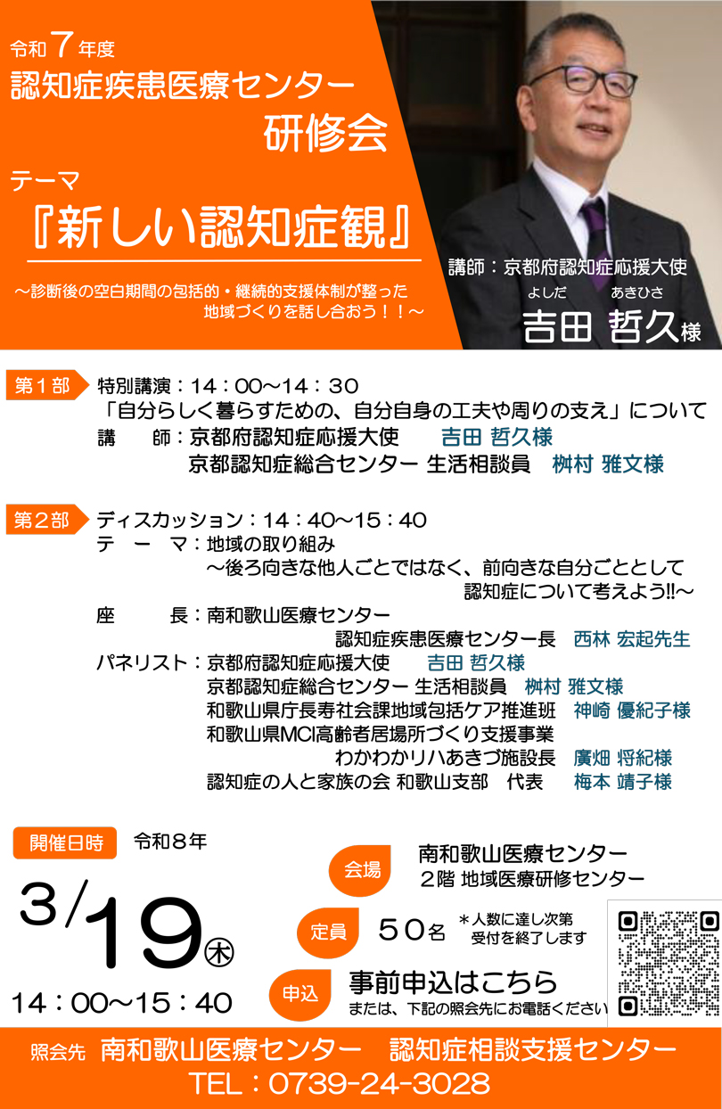 日 時 12月19日(金) 14時~15時15分場 所 南和歌山医療センター 2階 地域医療研修センター